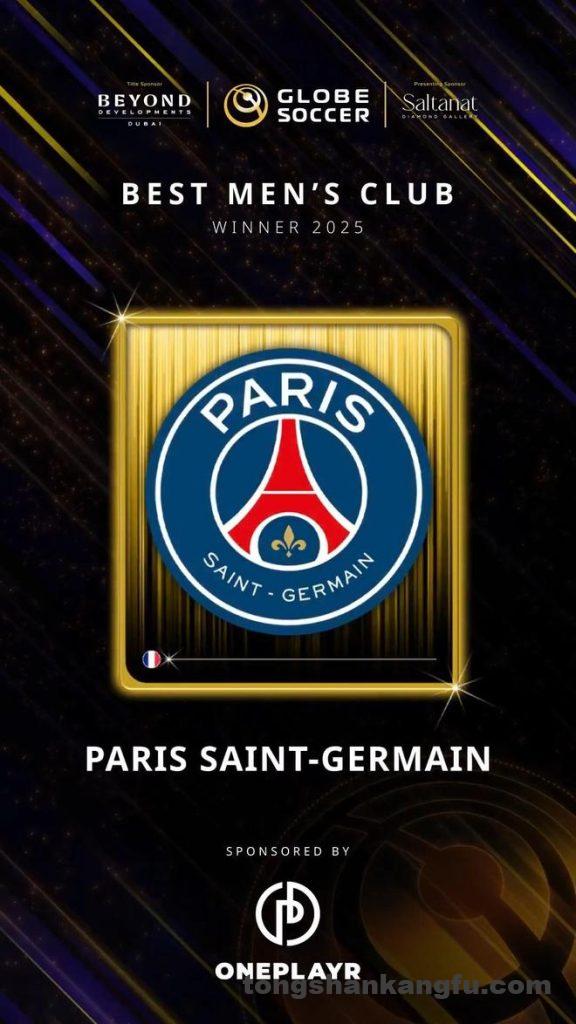 官方消息,巴黎圣日耳曼当选环球足球奖2025年最佳男足俱乐部。