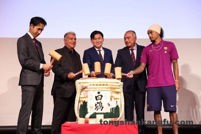 根据巴萨官方的公告,当地时间本周六,巴萨在下榻酒店举办了欢迎晚宴,拉波尔塔、尤斯特、阿劳霍、德容、拉菲尼亚出席。