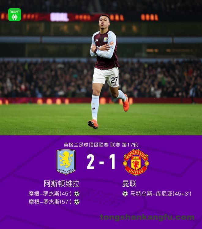 英超第17轮,维拉主场2-1击败曼联,豪取各项赛事10连胜和英超7连胜。