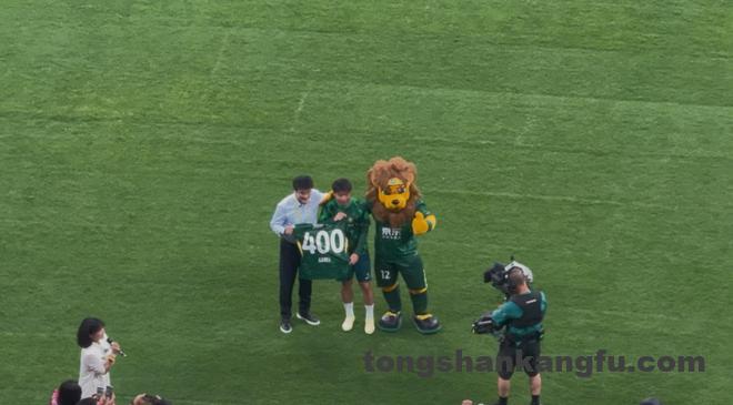 北京时间6月14日,中超第14轮,北京国安主场对阵长春亚泰,赛前国安总经理李明赠予张稀哲国安生涯400场纪念球衣。