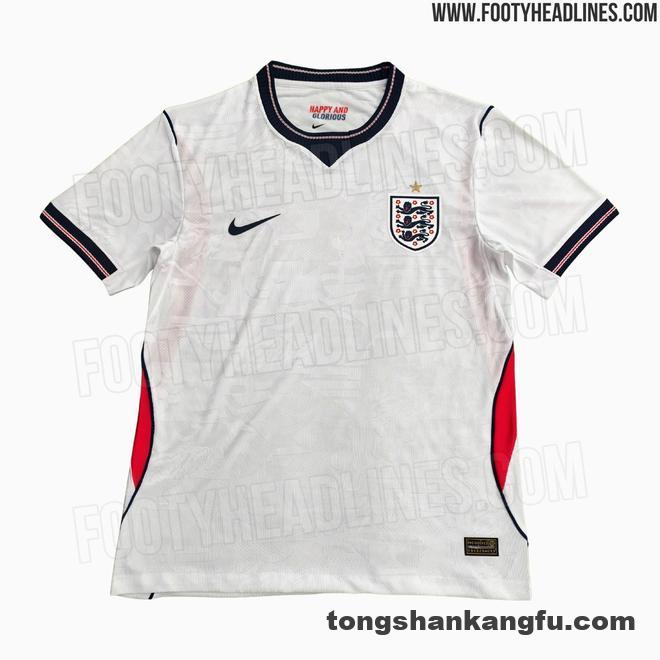3月17日晚,知名足球装备网站Footy Headlines曝光了英格兰队本届世界杯的球衣谍照,主场球衣以白色为主色调,客场球衣使用红色作为底色。