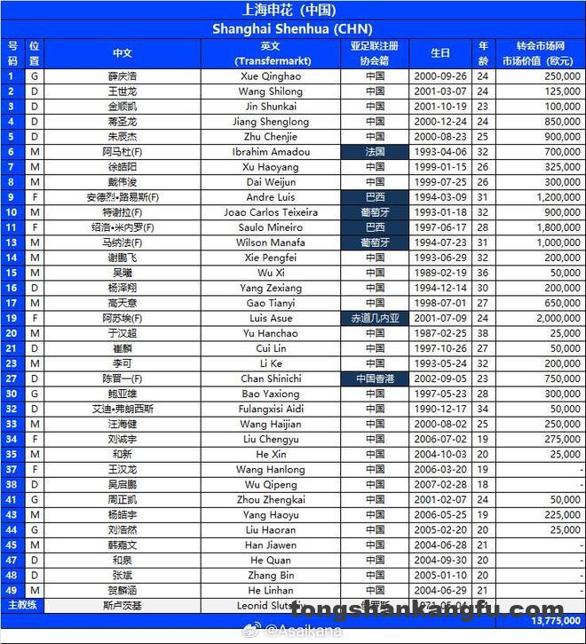 北京时间9月13日,德国转会市场亚洲区管理员朱艺 公布了上海申花亚冠精英联赛(联赛阶段)的大名单。