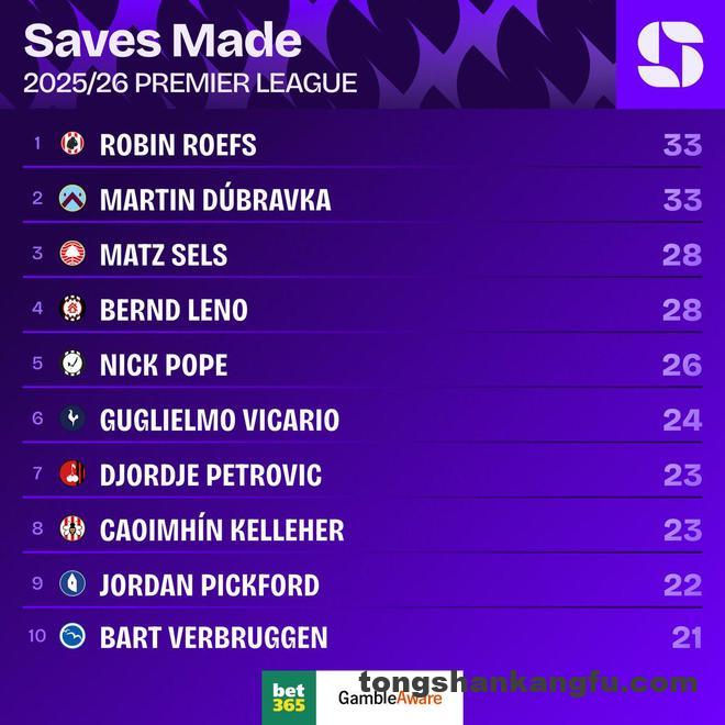 10月25日进行的英超联赛第9轮中,桑德兰队客场2-1力克切尔西,在9轮比赛过后暂时登上了英超联赛第二的位置。本赛季球队门将罗埃夫斯发挥稳健,据统计目前罗埃夫斯扑救数并列联赛第一,扑救成功率联赛第二,仅次于阿森纳门将拉亚。