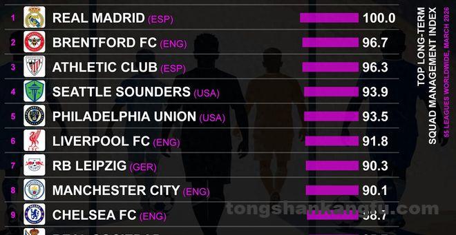 CIES报告:皇马长期管理全球第一,巴萨第21无缘前20