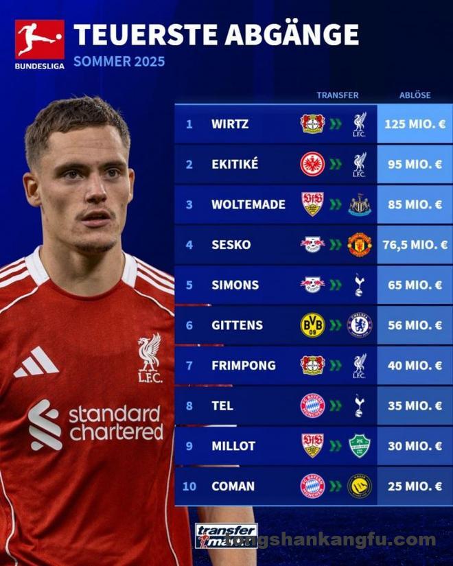 直播吧9月4日讯 德甲夏窗已经截止,《转会市场》也统计了德甲今夏的最贵卖人榜,维尔茨断崖领跑。 德转列德甲今夏 […]