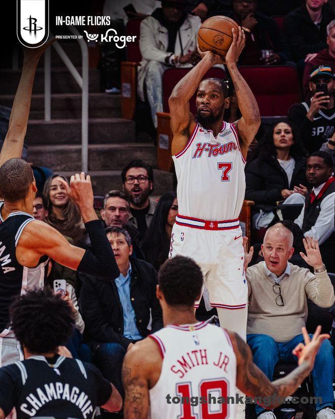 北京时间1月29日,NBA常规赛继续进行,休斯敦火箭队(28胜17负)遭遇败仗。虽然杜兰特生涯三分球数超越卡特升至历史第10,但文班亚马得到28分和16个篮板,他率队末节上演翻盘好戏,圣安东尼奥马刺队(32胜15负)在客场以111-99逆转战胜火箭队。火箭队结束2连胜。