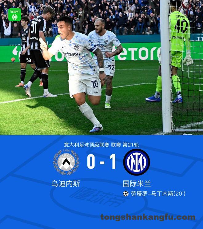 面临着六天三场鏖战考验的国际米兰,在这一个比赛日,迎来了魔鬼赛程的最后一场考验,在意甲第21轮联赛,奔赴蓝能体育场挑战乌迪内斯,本场比赛国际米兰在客场完全压制住了对手,劳塔罗马丁内斯为球队打入全场唯一进球,继续独自领跑意甲射手榜,帮助蓝黑军团1-0复仇乌迪内斯。