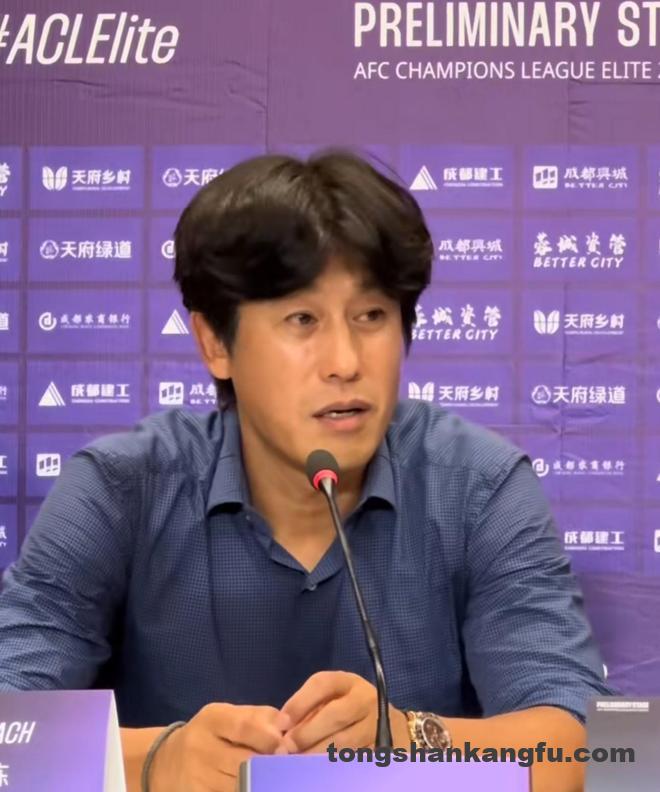 8月12日晚,2025-26亚冠精英联赛东亚区附加赛,成都蓉城主场3-0淘汰曼谷联,晋级正赛。赛后,成都蓉城主教练徐正源出席了新闻发布会。