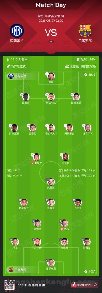 雷速体育5月7日讯 今晨3:00,欧冠半决赛次回合,国际米兰vs巴塞罗那。 赛前,足球网站GOAL发布一张对比 […]
