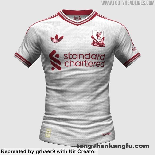 4月5日,足球装备网站Footyheadlines曝光了利物浦2026-27赛季客场球衣的设计细节。这款由阿迪达斯打造的客场球衣以白色为主色调,搭配栗红色的徽标,并在前胸采用独特的盾牌式徽章图案,灵感来源于1970年代的徽章设计。