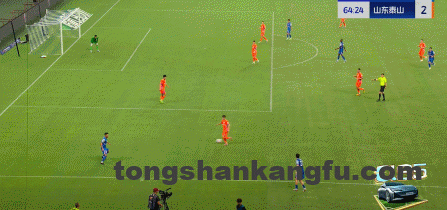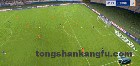 第85分钟,薛庆浩球门球短传被彭逸翔倒地铲抢,李源一外围得球后马上传给禁区线附近的卡扎,后者右脚兜射远角得手完成帽子戏法,泰山3-3扳平比分。卡扎2场7球,7场打入14球,本赛季进球数达到22球。