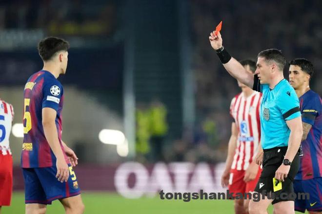 咬伤巴萨其实不是难事。本赛季巴萨在欧冠每场都有失球,但很少被对手轻易咬死。第一阶段巴萨输了两场比赛,对巴黎遭绝杀,对切尔西则因为阿劳霍半场吃红牌造成崩盘。总结下来,能让这支巴萨屈服的除了超强实力,就只剩下个体犯错。巴萨因为依赖造越位,战术犯规多,再加上年轻人多,吃红牌概率大。前几天赫拉德·马丁逃过一劫,这次总算是让马竞赶上了。马竞一次长传反越位机会,朱利亚诺·西蒙尼已成单刀之势,库巴尔西无奈从背后撂倒对手。主哨的罗马尼亚裁判科瓦什先出示黄牌,但在VAR的提醒下改成直接红牌,将库巴尔西罚下。