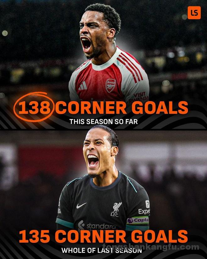 根据LiveScore的统计,本赛季英超前28轮过后(阿森纳和狼队多赛一场),共计281场比赛已经出现了138粒通过角球完成的进球,超过了上赛季135球的总和,而本赛季的英超还剩余10轮,还有接近100场比赛,上述138球的数据无疑会进一步增加。