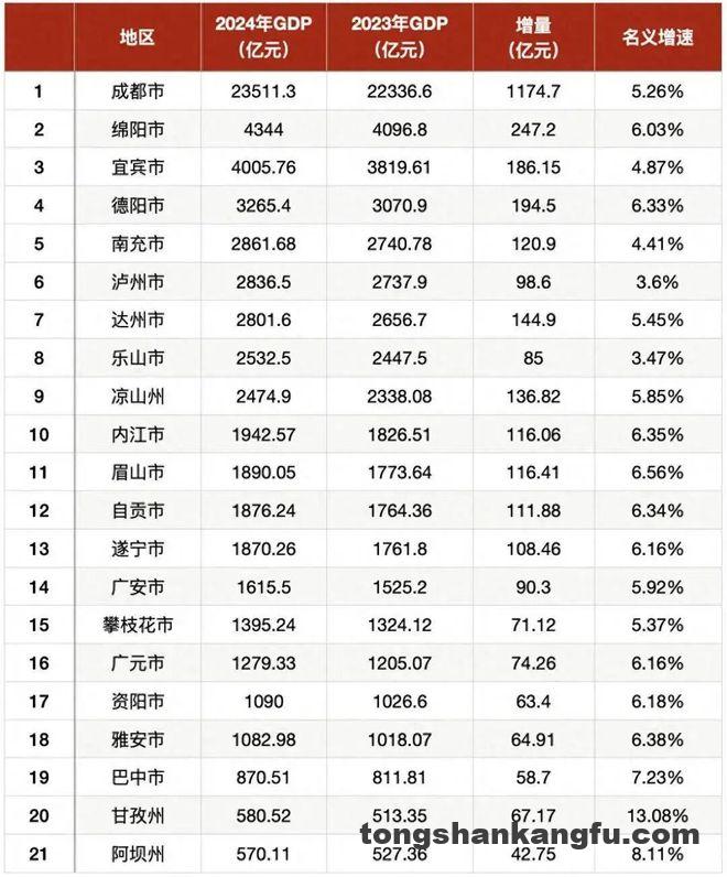 2024年四川各地GDP