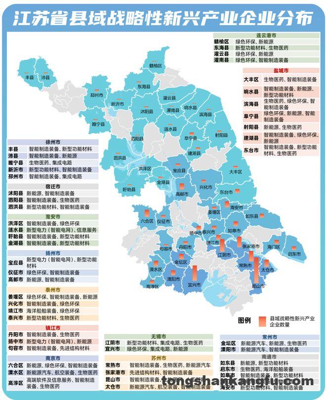 江苏省县域战略性新兴产业企业分布 图片来源:安徽创研院