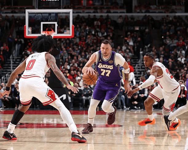NBA常规赛继续进行,洛杉矶湖人队(28胜17负)继续连胜。东契奇得到46分、7个篮板和11次助攻,勒布朗得到24分和5个篮板,他们率队前三节确立两位数优势后顶住对手反扑,湖人队在客场以129-118战胜芝加哥公牛队(23胜23负)。湖人队拿到2连胜,公牛队结束4连胜。