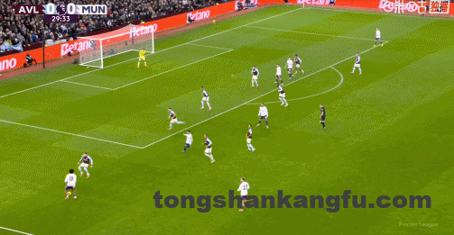 第45分钟,纯个人能力!摩根-罗杰斯内切抽射挂死角,维拉1-0领先曼联!