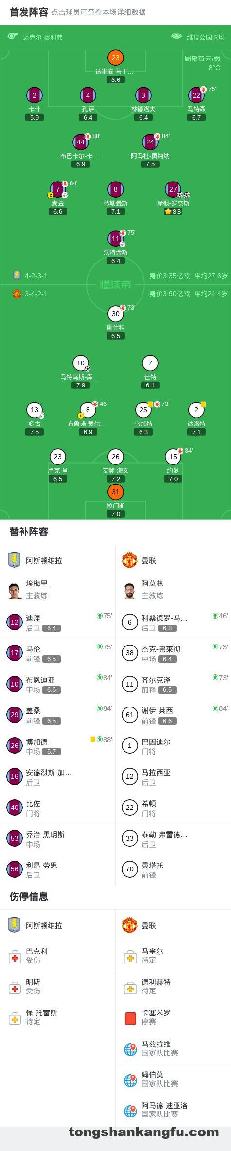 第45+3分钟,多古抢断卡什送助攻,库尼亚兜射破门,曼联1-1扳平维拉!