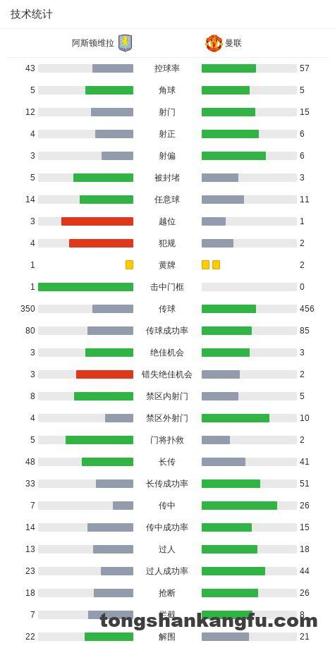 北京时间12月22日0:30,英超第17轮焦点战,曼联作客维拉公园球场挑战阿斯顿维拉,本场主裁判为迈克尔-奥利弗。上半场,罗杰斯内切轰世界波打破僵局,多古助攻库尼亚闪电扳平。下半场,罗杰斯兜射制胜梅开二度。最终,曼联1-2客负维拉。
