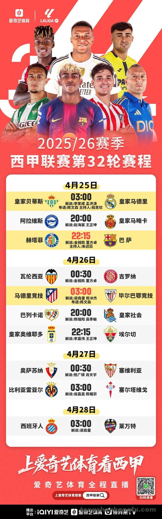 本场比赛,爱奇艺体育将全程直播。直播间传送门——(手机/pad点击→阅读原文)