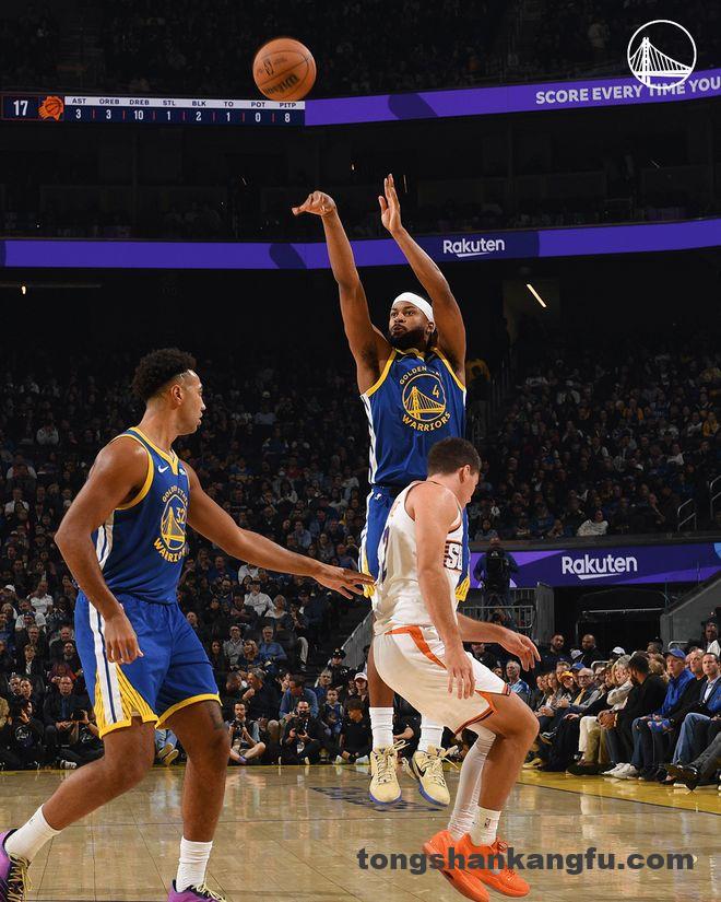 勇士队的库里得到28分、4个篮板和3次助攻,全场23投9中,他超越加里-佩顿成为史上命中球数第26多的球员。穆迪得到24分和5个篮板,普斯特得到14分和6个篮板,波兹姆斯基得到13分和4次助攻,希尔德得到12分,库明加得到9分和5个篮板,格林得到2分、6个篮板和8次助攻。太阳队的布克得到38分和4次助攻,阿伦得到16分、4个篮板和4次助攻,威廉姆斯得到16分、16个篮板和4次助攻,邓恩得到10分。