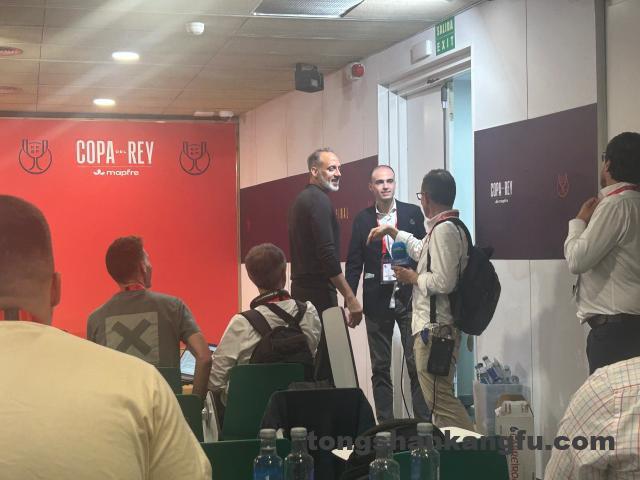 “恭喜您,您是第一位率领欧洲五大联赛球队夺得冠军奖杯的美国教练。”在作为主帅率领皇家社会夺得国王杯冠军后,佩莱格里诺·马塔拉佐走进发布厅,现场所有记者为他献上整齐的掌声,有记者提醒这位意大利裔美国籍教头,他创造了这样一个里程碑时刻。“我很高兴,这座奖杯体现了我们付出的努力。”还不太会说西班牙语的马塔拉佐操着美式英语回答着记者们的提问,发布会结束后,这位神奇教头笑着和几位记者拥抱后才离开发布厅。
