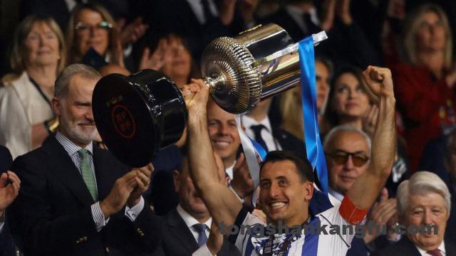 皇家社会曾在2021年赢下被推迟一年的国王杯决赛,收获冠军奖杯,那也是球队上一个辉煌时期的开端。当时皇社阵中拥有厄德高、梅里诺、伊萨克等一众如今在英超赛场表现出色的名将,而决赛攻入致胜进球的,是如今还在阵中的米克尔·奥亚萨瓦尔。正是凭着这套班底,以及后来崛起的苏维门迪、勒诺尔芒等人,皇家社会在接下来数年内成为欧战常客,还一度杀入欧冠赛场。