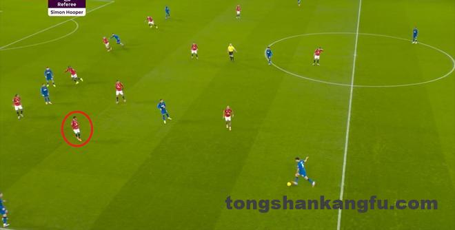 为了能尽量搞清楚这个问题,我们有必要回顾一下对阵纽卡斯尔的这场赛前发布会,阿莫林的前言后语到底说了什么。当时,媒体问到了阿莫林在上赛季说过的,球队需要加强的一些问题,比如需要引进更具侵略性的边锋球员,然后阿莫林想了起来,便表示他当时说的是阿玛德-迪亚洛。“去年我们大部分时间都让马兹拉维和达洛特踢那个位置,如果让阿玛德踢,那就完全不一样了。”这个位置,其实指的就是阿玛德目前的队内位置,三后卫体系当中的右翼卫,但在实际上,阿玛德的无球位置也并不像翼卫,他经常因为压迫和进攻职责出现在左中卫身前,只是需要跟人和防守的时候才会回到禁区内和边线处: