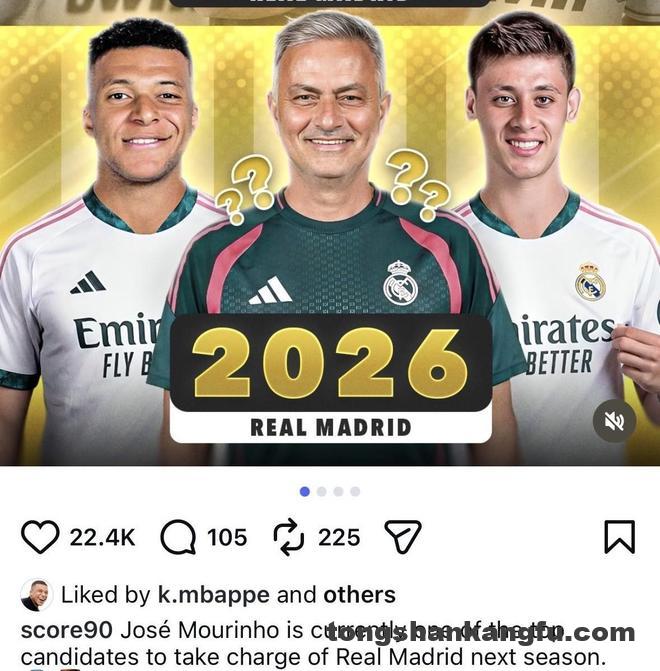 北京时间4月22日,姆巴佩在社交平台上点赞了Score90发布的一篇,关于“何塞-穆里尼奥可能回归皇家马德里”的帖子。目前他已取消点赞。