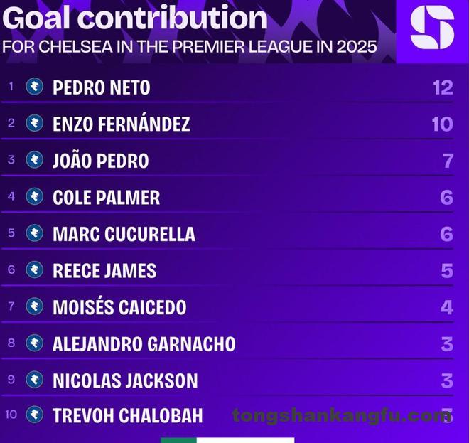 英超第11轮比赛,切尔西3-0战胜狼队,佩德罗-内托破门,据足球数据统计网站Squawka的统计,佩德罗-内托2025年在英超打进6粒进球,贡献助攻6次,他是切尔西队内同期唯一英超进球5+且助攻5+的球员。