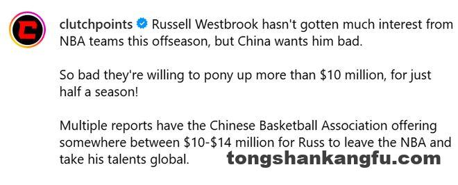 北京时间10月15日,近日威少得到CBA球队报价的消息引起热议,美媒ClutchPoints在社媒上报道了更多细节。以下是报道内容——