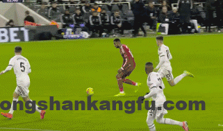 比赛第53分钟,利物浦球员索博斯洛伊开出角球,麦卡利斯特头球攻门,皮球击中横梁弹出。