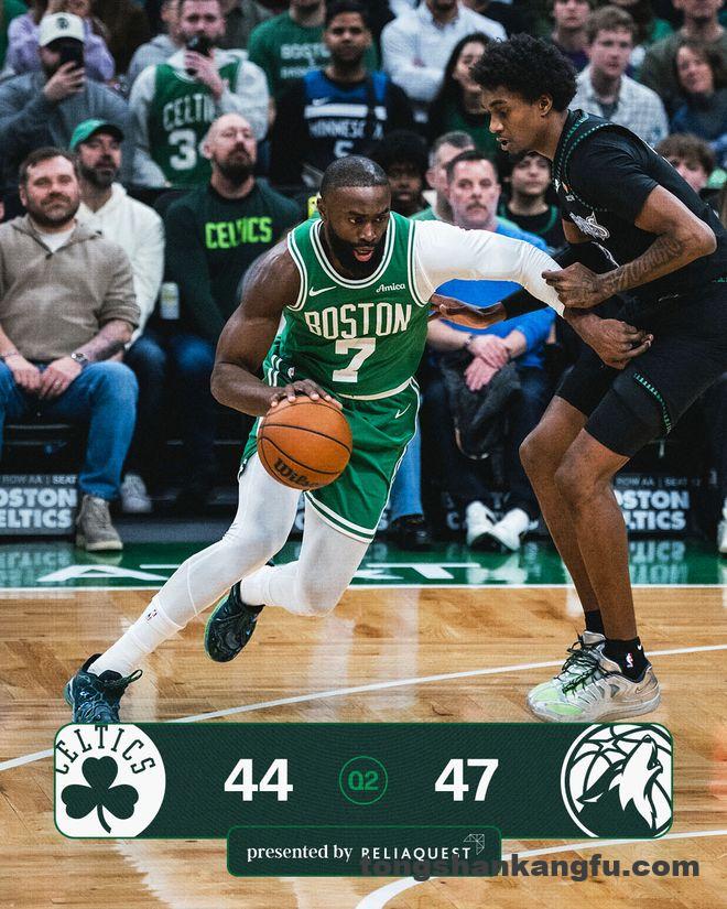 森林狼队的爱德华兹继续伤停。开场后布朗迅速进入状态,一人独取7分率队以11-2领先。迪文琴佐回应三分带领球队连追6分迫近,布朗保持攻击性,连投带罚又拿4分,首节还有3分30秒时凯尔特人队以17-10领先。海兰德突破还击,普理查德连进两球,首节结束时凯尔特人队以23-14领先。布朗单节得到11分。