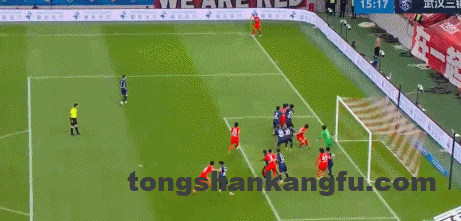 比赛的第15分钟,开出左侧角球,魏震小禁区冲顶破门,1比0!从慢镜头来看,球打在了魏震的肩膀上反弹入网。