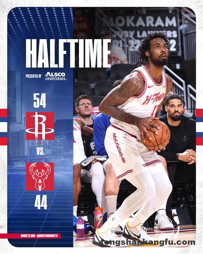 火箭队的谢泼德上半场得到15分,汤普森得到8分和8个篮板;雄鹿队的吉昂得到16分、6个篮板和5次助攻,南斯得到12分。