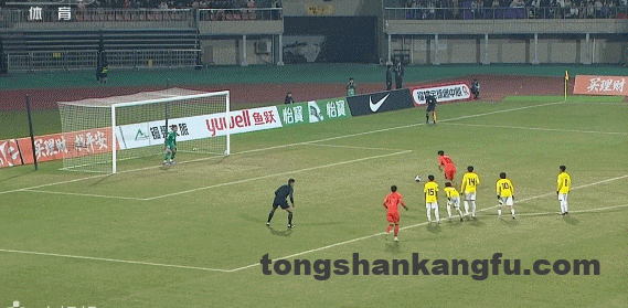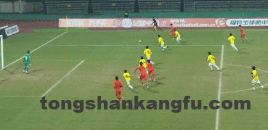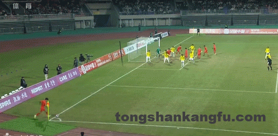 第11分钟,万项主罚左侧角球,赵松源头球冲顶破门,1比0!