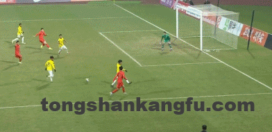 身体处于劣势的文莱球员频频倒地,这让上半场的补时多达8分钟。上半场补时第2分钟,张君豪底线横传,万项前点挑射破门,4比0!