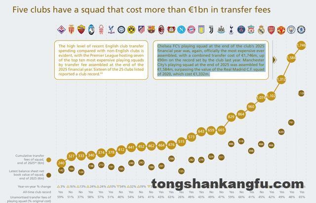 切尔西在2025年的球员阵容再次成为有史以来最昂贵的,总转会费用达到了17.46亿欧元,比去年创下的纪录增加了9000万欧元。