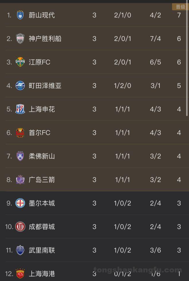 3轮战罢,申花1胜1平1负积4分,升至积分榜第5位。而成都蓉城则是1胜2负积3分跌入淘汰区,海港作为目前东亚区唯一0胜的球队,以1平2负积1分排名积分榜垫底。