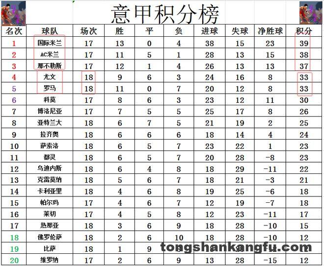 积分榜方面,国米主场轻取博洛尼亚后,又是以1分优势超过AC米兰,夺回榜首。那不勒斯也不甘示弱,完胜拉齐奥后,也还是1分之差紧追AC米兰,领先第4的尤文,第5的罗马4分,坐稳第3的位置。