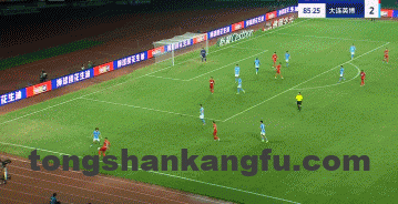 第35分钟,罗德里格本方罚球区左侧解围没有踢远,阿利米罚球区线右侧左脚爆射,球击中横梁下沿弹回场内,毕津浩球门区内近距离头球补射得手,大连英博海发2-0领先!