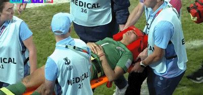 第83分钟,印度女足门将查努头部受伤,被担架抬下