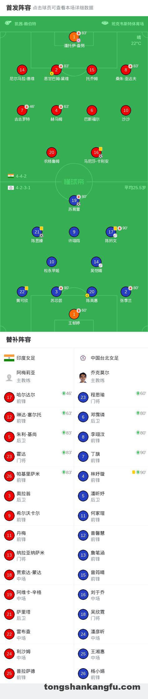 北京时间3月10日女足亚洲杯小组赛 第3轮,印度女足对阵中国台北女足。中国台北女足队苏育萱、陈昱嫀分别破门,印度女足卡利安扳回一城,门将查努不幸乌龙。最终中国台北女足3-1印度女足晋级,淘汰赛将战中国女足。